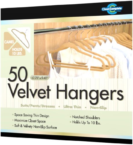Closet Complete® America's Favorite Brand brings quality, luxury and value to the care of all of your suits with our 50-piece Camel Ultra Thin No Slip Velvet Suit Hanger. Contoured shoulders protect your suit's shape and fabric, notches hold accessories securely. The no-slip velvet feel holds clothes securely and prevents slipping. Durable construction, thin space saving design maximizes closet space.