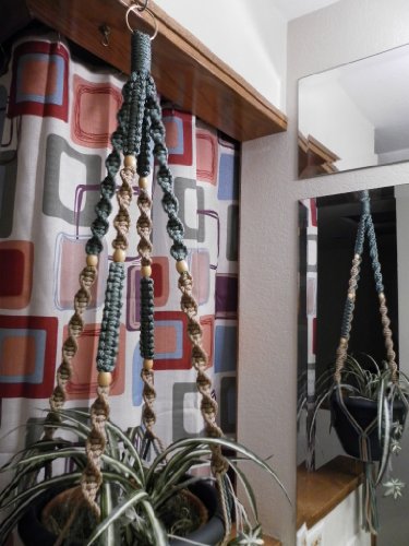 SAGE AND SAND 8 TAN WOODEN BEADS MEASUREMENTS: HANGING ALONE the hanger measures 47" from top of the ring to end of the tassel. From top of the ring to the knot under the plant /HANGING ALONE/ is ~ 38". The knot under the plant and the tassel are 9". WITH PLANT INSIDE THE HANGER WILL SHORTEN 2" TO 4" Can hold a pot 8"-14". I try to make original and colorful looking plant hangers and enjoy creating my own designs. I respect each artisan that sales his own made hanger/s , so I never duplicate their designs, and would appreciate the same from them. If you need longer or shorter hanger, or for a smaller or larger size pot, or color you cannot find in my listings, PLEASE DO NOT HESITATE TO CONTACT ME: SILVETO73@YAHOO.COM 1 new hand made macrame plant hanger. This Hanger is made from 6mm POLYPROPYLENE braided cord. 2" Harness ring. The plant hanger will hold 8"-14" potted plant. Great for both indoor and outdoor use as it is weather resistant and durable. The hanger pictured in the photo is the actual item you will receive. The hanger is shown with pot 6" deep......6" wide at the base........9" wide at the top Plants, baskets and pots do not come with any auction. If you need item/s to be shipped to different address please update the address when checking out, or write me a note. Please email me if you have any questions regarding a hanger/s at: SILVETO73@YAHOO.COM