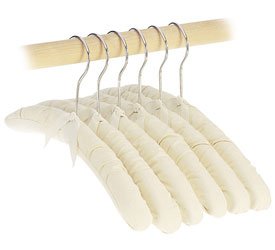 Update your closet with this elegant set of 6 canvas hangers. Each hanger is padded and covered with 100% cotton - the perfect place to hang blouses and shirts, without leaving harsh creases and lines in your clothes. The soft, natural look of these clothes hangers will add style and function to your closet. Sold in a set of 6. Assembly level/degree of difficulty: No Assembly Required.
